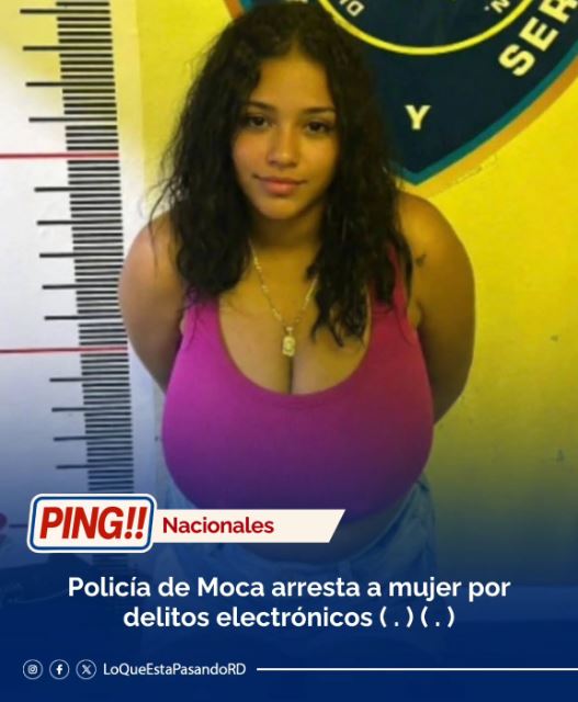 Miembros de la Policía Nacional detuvieron a Yaneisy Paniagua Abad, alias “Yani”, de 31 años, en la provincia de La Vega. Fue imputada por comisión de delitos de alta tecnología. Curiosamente, el medio Lo Que Pasa_RD dice que el arresto fue en Moca y le pone otra cara a la detenida. ¿Este es el famoso «cambio de carátula»? ¿Por qué hacerle una cirugía estética? ¿Le hacía falta algún cambio?