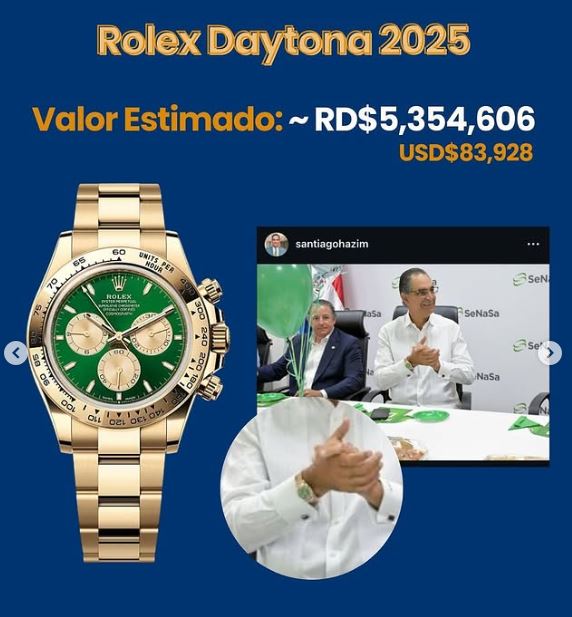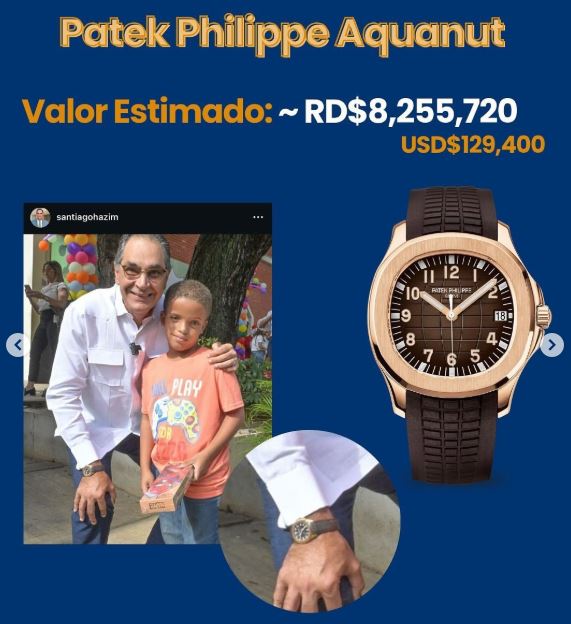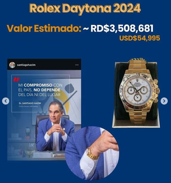 Una investigación sobre el desfalco en SeNaSa, conocido como Operación Cobra, detalla parte de los lujos acumulados por el exdirector Santiago Hazim. Poseía una colección de relojes de alta gama cuyo valor total asciende a un estimado de RD$23,530,588 (más de 23.5 millones de pesos).
